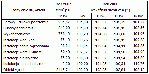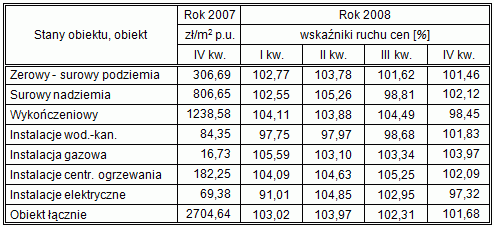 natomiast cenę 1 m2 p.u. tego budynku w IV kwartale 2008 obliczymy jako iloczyn: