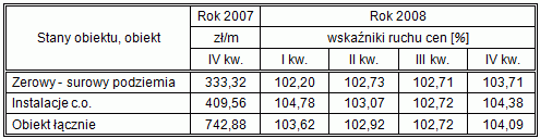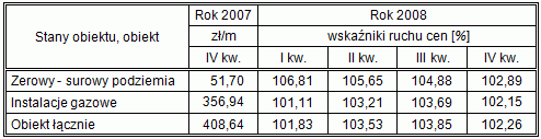 Przykładowo – dla 24-rodzinnego budynku mieszkalnego wzniesionego w technologii tradycyjnej, od IV kwartału 2007 r. począwszy, wskaźnik wzrostu cen w ciągu roku stanowić będzie iloczyn: