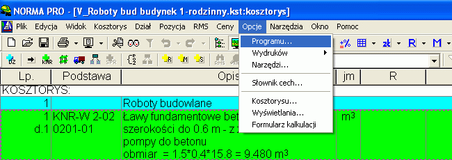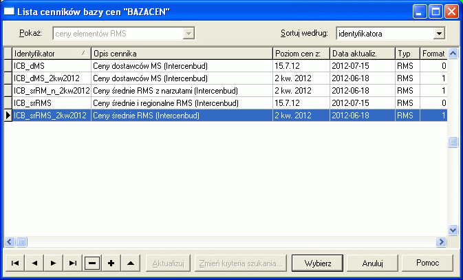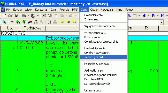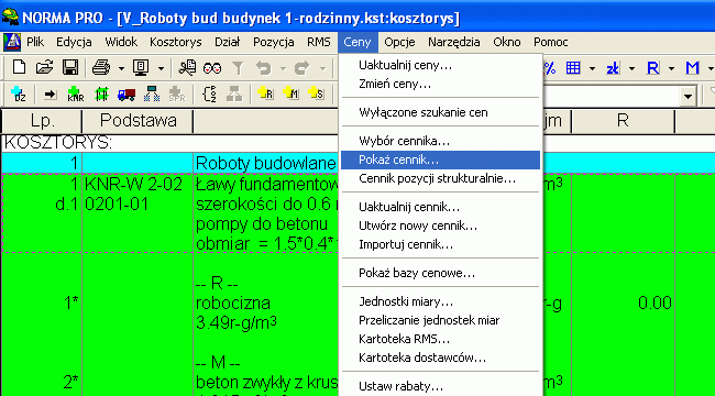 Czas sprawdzić o co wzbogaciła się moja baza cenowa. W tym celu wybieramy z menu głównego Ceny -> Pokaż cennik…