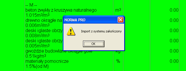 Po naciśnięciu OK następuje import cen do programu.
