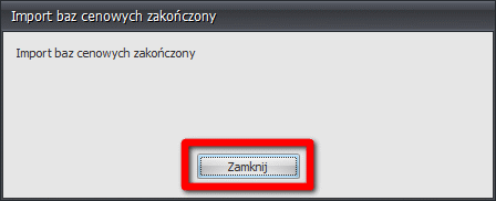 Po prawidłowym zaimportowaniu cen ukaże się nam poniższe okienko.