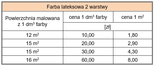 Jak przedstawia się cena 1 m² malowania ściany dla różnych farb i ilości aplikowanych warstw, przedstawiają poniższe tabele (cena tylko za materiał).