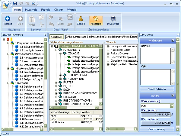 Rys.4. Import danych z kosztorysu do inwestycji w programie Viking