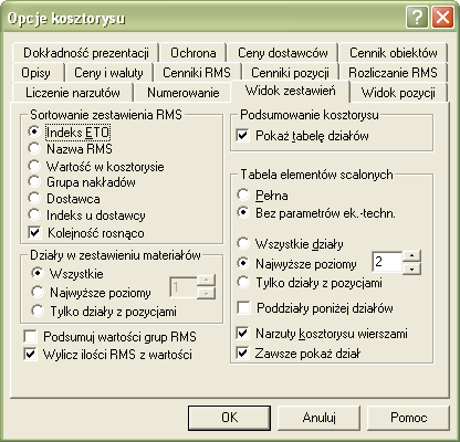 Rys. 1. Zakładka Widok zestawień w oknie Opcje kosztorysu
