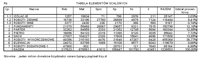 Przy takim ustawieniu opcji wydruk Tabeli Elementów Scalonych będzie wyglądał następująco: