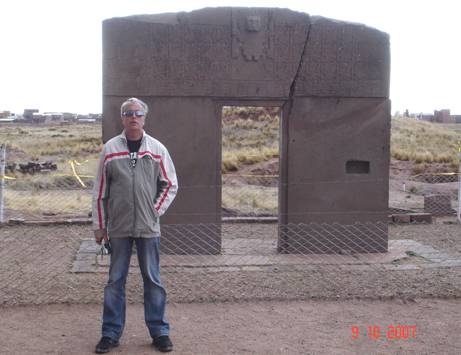 fot. 1. Brama Słońca po boliwijskiej stronie jeziora Titicaca, z pękniętym zwieńczeniem