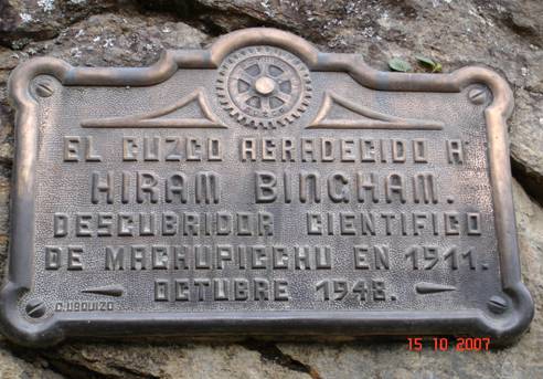 fot. 3. Tablica upamiętniająca odkrycie Macu Picchu w 1911 roku