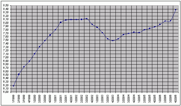 Aby to wszystko nie było tylko suchym wykładem, na zakończenie, zamieszczam dla prześledzenia i ewentualnego odnalezienia się w tym zamieszaniu, wykres przedstawiający stawki r-g kosztorysowej na przełomie ostatnich kilku lat (oparte na wydawnictwach poznańskiego ORGBUDU).