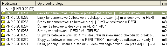 Opisana tu metoda ma dodatkową zaletę polegającą na tym, że jeżeli nie wpiszę pełnej podstawy wyceny, to program zatrzyma się na poziomie spisu rozdziałów lub tabel wybranego katalogu i konkretną pozycję będzie można wybrać dokonując przeglądu spisu treści.