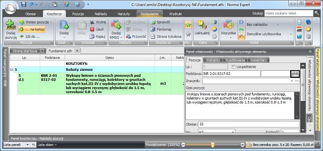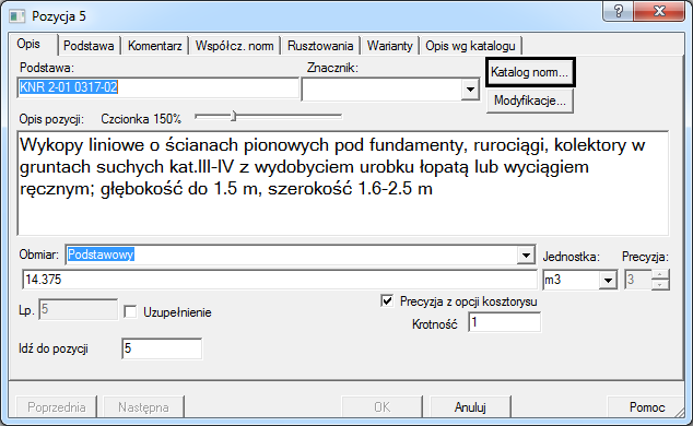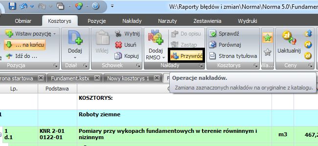 Będzie to możliwe tylko w przypadku, kiedy podstawy pozycji w przedmiarze/obmiarze będą się pokrywały z podstawami pozycji w bazie katalogów normatywnych zainstalowanych w programie.