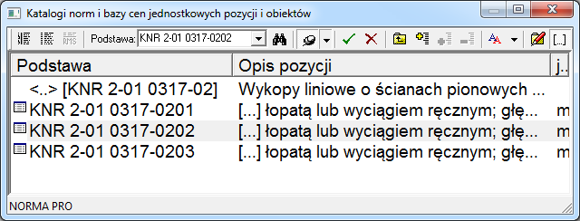 W moim przykładzie widać, że podstawa pozycji nr 5 jest niekompletna - zamiast "KNR 2-01 0317-0202" jest "KNR 2-01 0317-02".