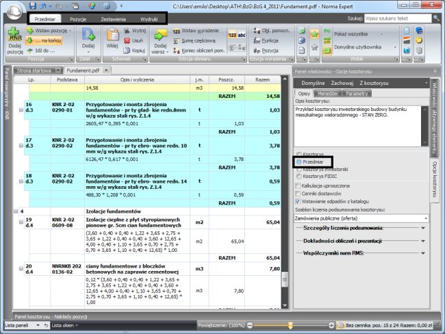 Po wczytaniu przedmiaru/obmiaru z pliku PDF do Normy EXPERT widoki: kosztorysu, nakładów, narzutów i zestawień będą zablokowane.