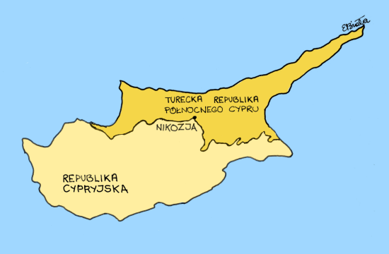 Jest de facto podzielonym państwem - od 1974 r. od czasu inwazji armii tureckiej na Cypr większa część wyspy obejmująca ok. 2/3 powierzchni znajduje się po kontrolą rządu Republiki Cypryjskiej, podczas gdy część północna jest kontrolowana przez nieuznawaną przez wspólnotę międzynarodową Turecką Republikę Północnego Cypru (w skrócie „TRPC”). Jedynym państwem, które uznaje i utrzymuje stosunki dyplomatyczne z „TRPC” jest Turcja. Stolicą Cypru (obu części) jest Nikozja (Lefkosia). Walutą Cypru jest od 2008 r. euro, którym można płacić w obu częściach wyspy, z tym, że w części północnej oficjalnie jednostką płatniczą jest turecka lira (TL). Dane dotyczące liczby ludności nie są pewne – wg jednego z szacunków całą wyspę zamieszkuje ponad milion mieszkańców, z czego ok. 300 tys. część północną.