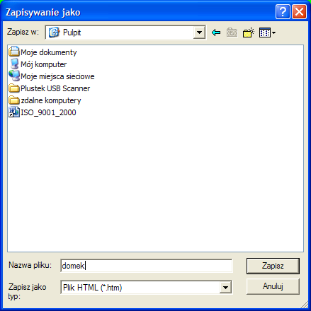 Rys.3. Zapisywanie wygenerowanego wydruku w formacie HTML.