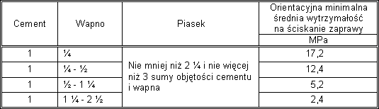Tablica 1. Proporcje objętościowe dla zapraw murarskich wykonywanych w miejscu budowy