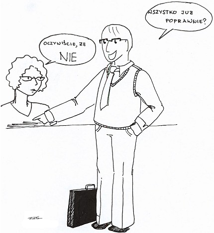 - To Pan powinien wiedzieć o co Panu chodzi, proszę złożyć, sprawdzimy i w razie czego wezwiemy do uzupełnienia papierów - pani zza lady jedynie pobieżnie przegląda dokumenty.